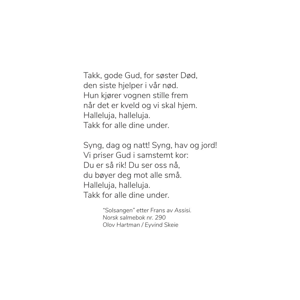 Hjelp til selvhjelp for etterlatte. Her er to dikt og noen korte tekstavsnitt til ettertanke, en vise, en salme og tre bibeltekster.